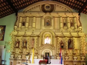 Entre otras exhibiciones se pueden apreciar objetos de culto religioso del antiguo oratorio donde se guardan tallas jesuíticas esculpidas en madera y piezas de platería.